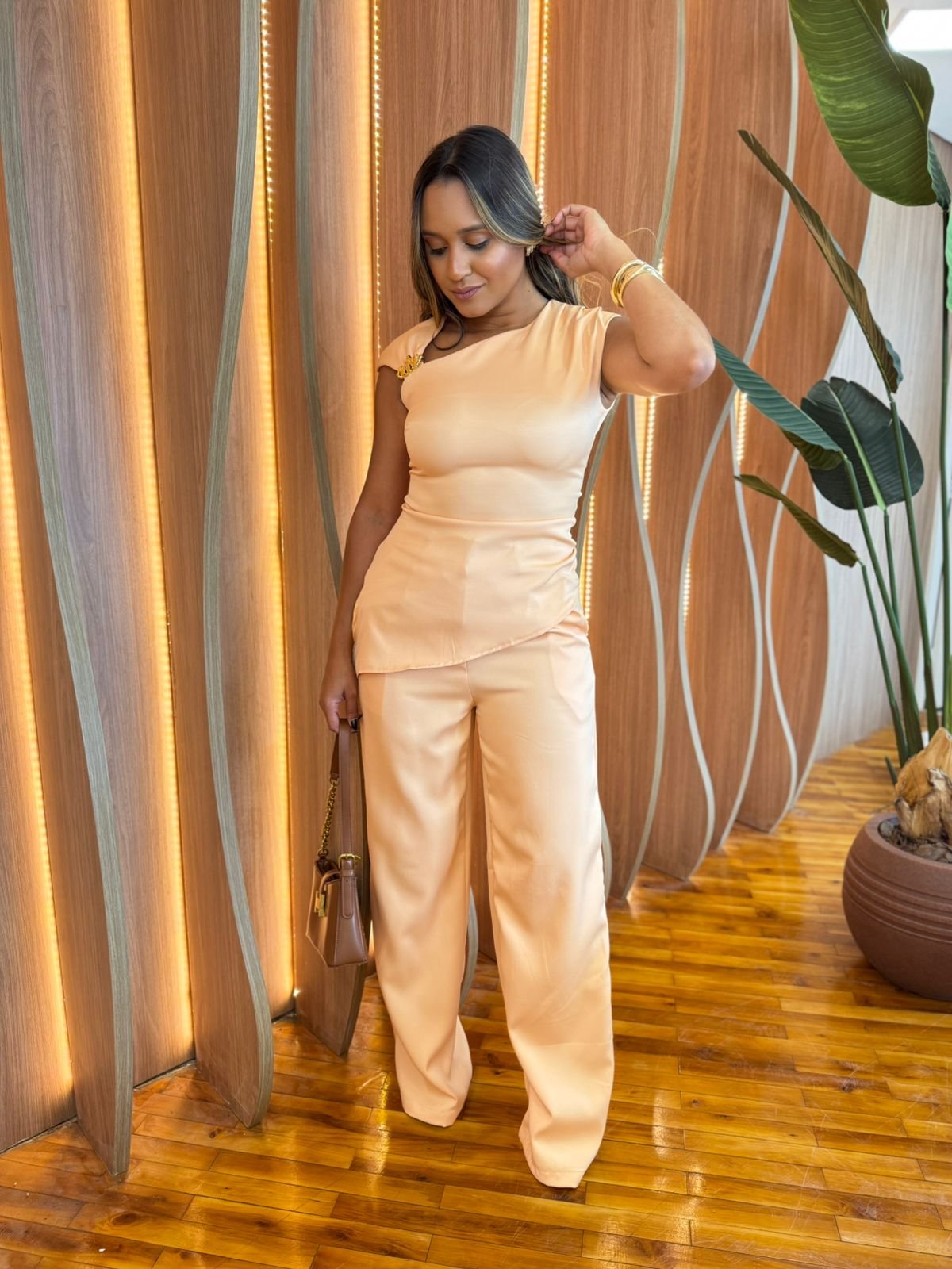 CONJUNTO CALÇA PANTALONA+BLUSA UNILATERAL GIOVANA NUDE