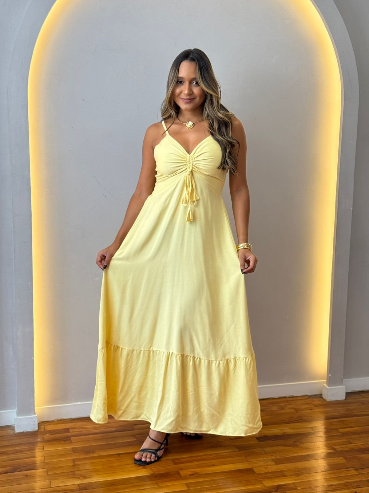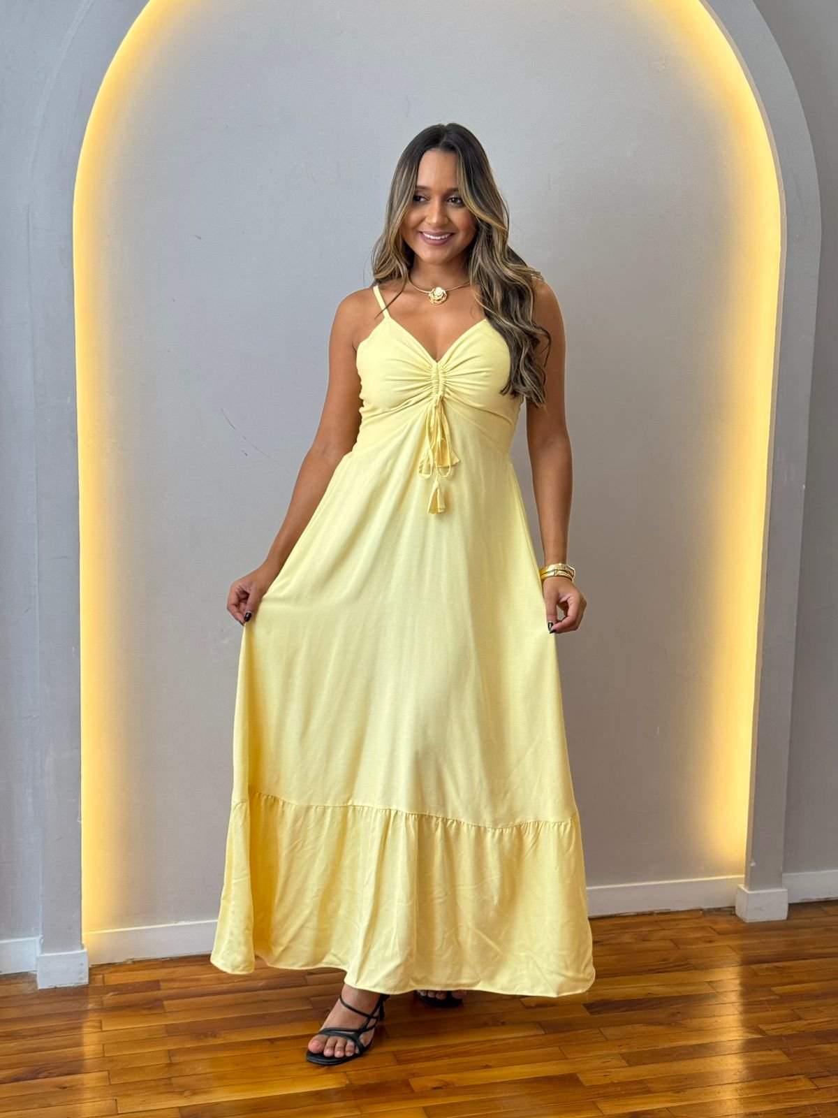 VESTIDO LONGO EM VISCOLINHO KASSIA AMARELO