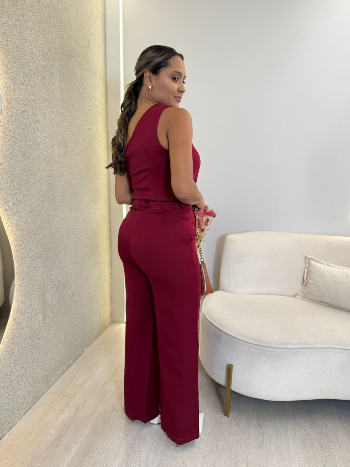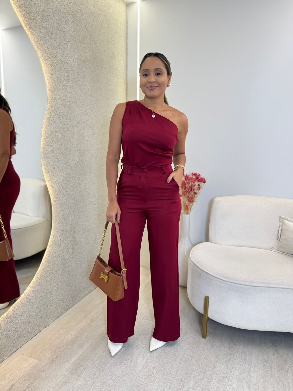 CONJUNTO CALÇA PANTALONA COM BLUSA UNILATERAL CLARISSE VINHO