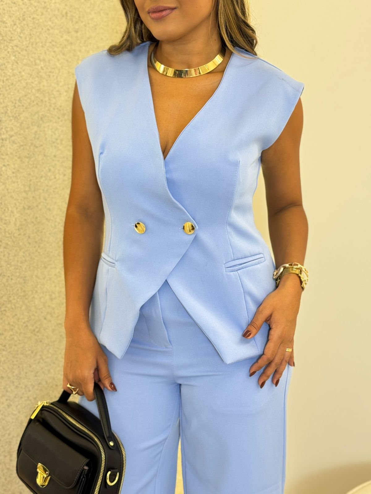CONJUNTO CALÇA PANTALONA COM COLETE EM ALFAIATARIA THALYTA AZUL