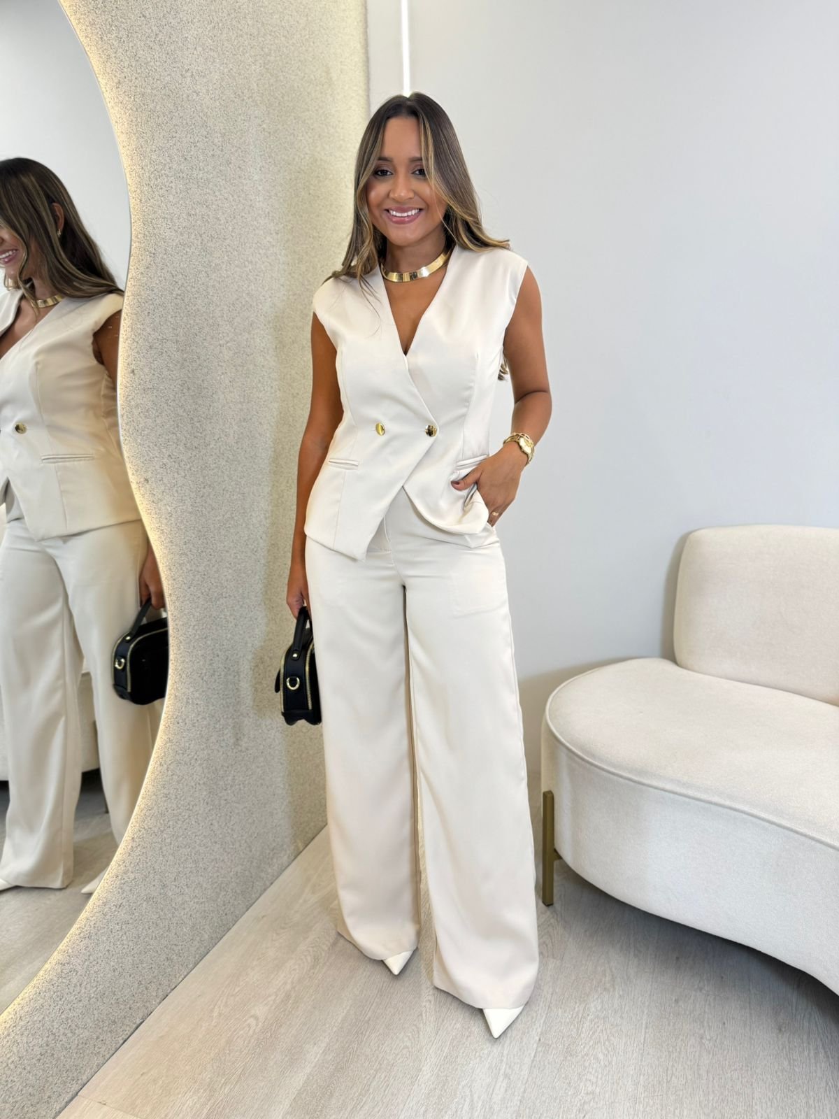 CONJUNTO CALÇA PANTALONA COM COLETE EM ALFAIATARIA THALYTA NUDE