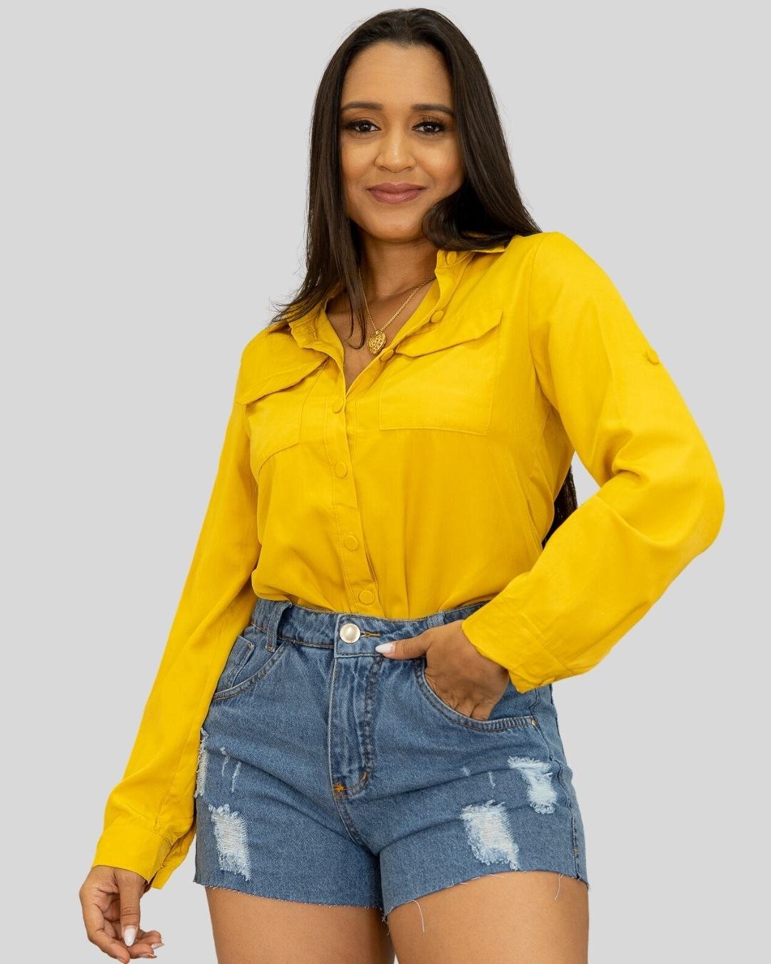 CONJUNTO COLETE+SHORT EM ALFAIATARIA BRUNA AMARELO