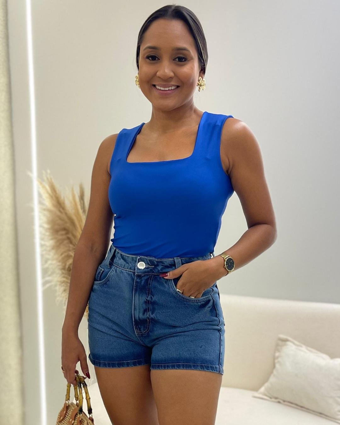 CONJUNTO COLETE+SHORT EM ALFAIATARIA BRUNA AZUL