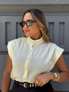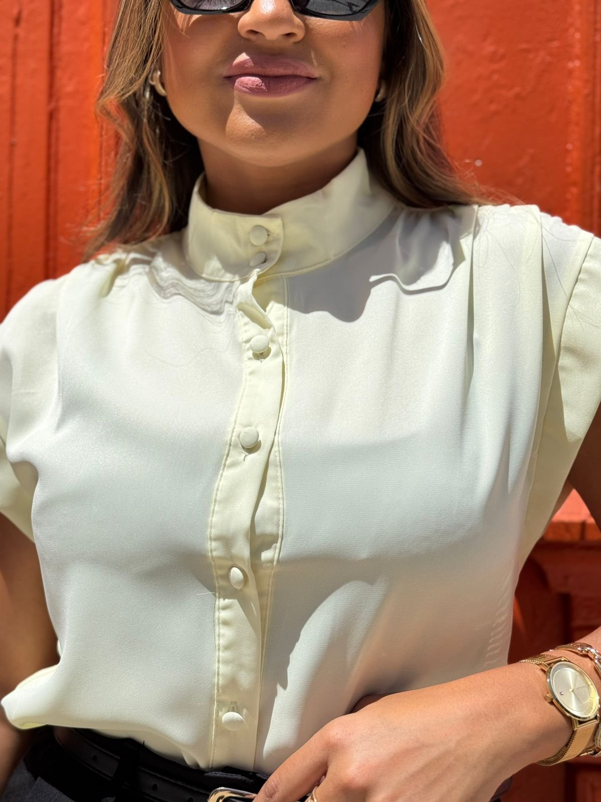 BLUSA REGATA COM GOLA EM CREPE VIOLETA AMARELO