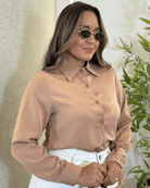 BLUSA SOCIAL EM CREPE SEDA PRISCILA MARROM