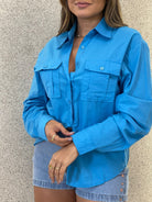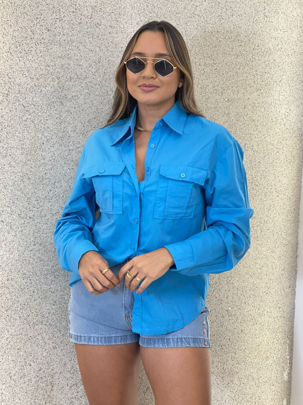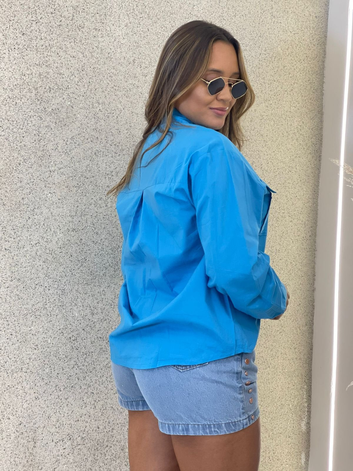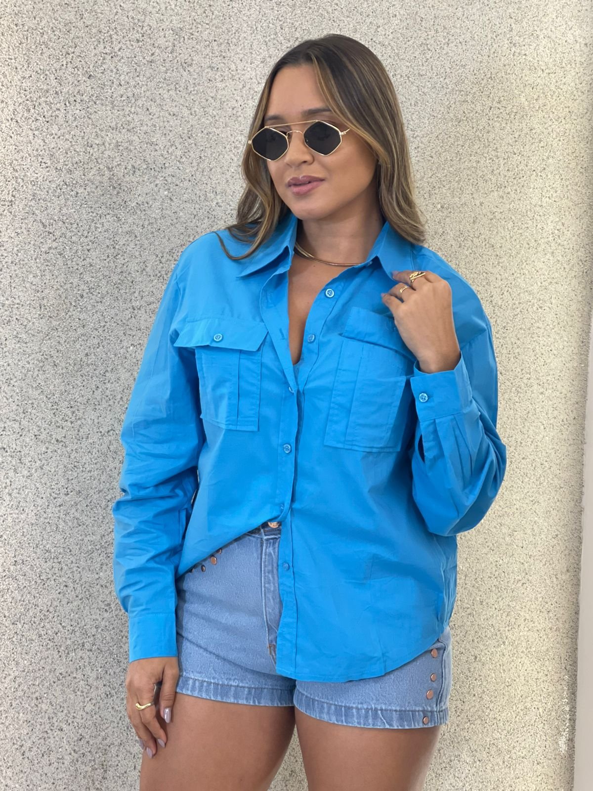 BLUSA SOCIAL EM POLIESTER ZOE AZUL