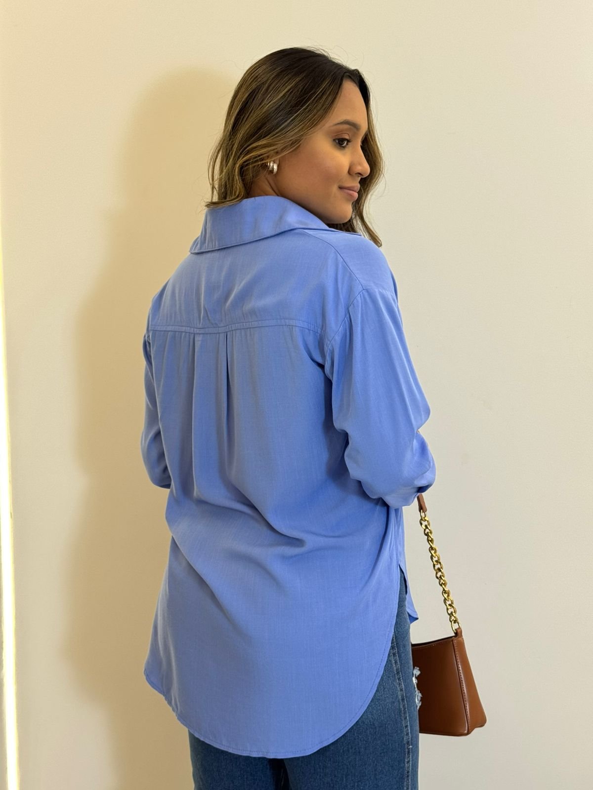 BLUSA SOCIAL EM VISCOLINHO AURORA AZUL