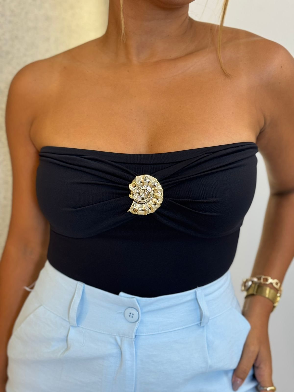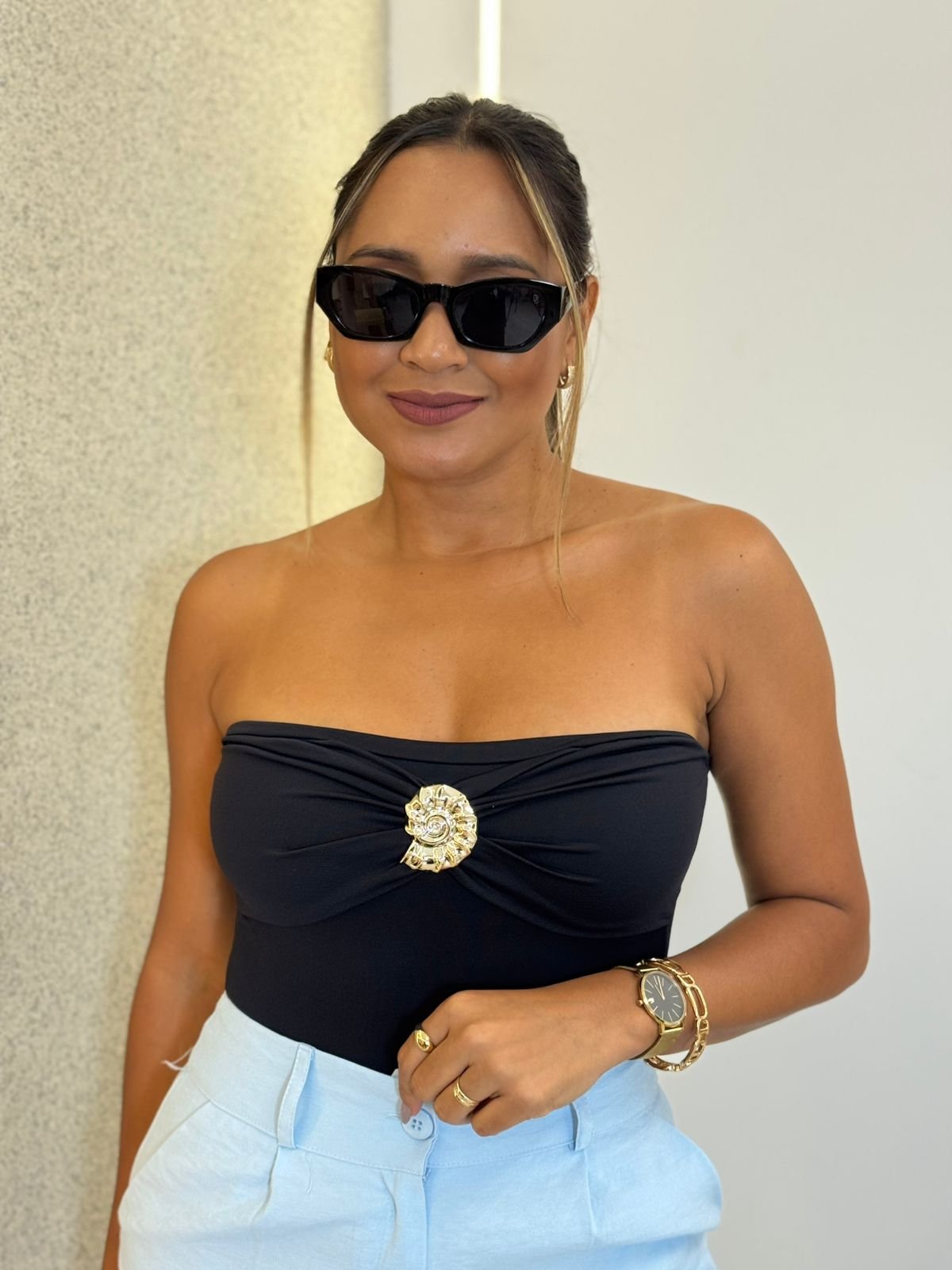 BODY CORTE RETO COM FIVELA ORGÂNICA EM SUPLEX LETICIA PRETO