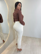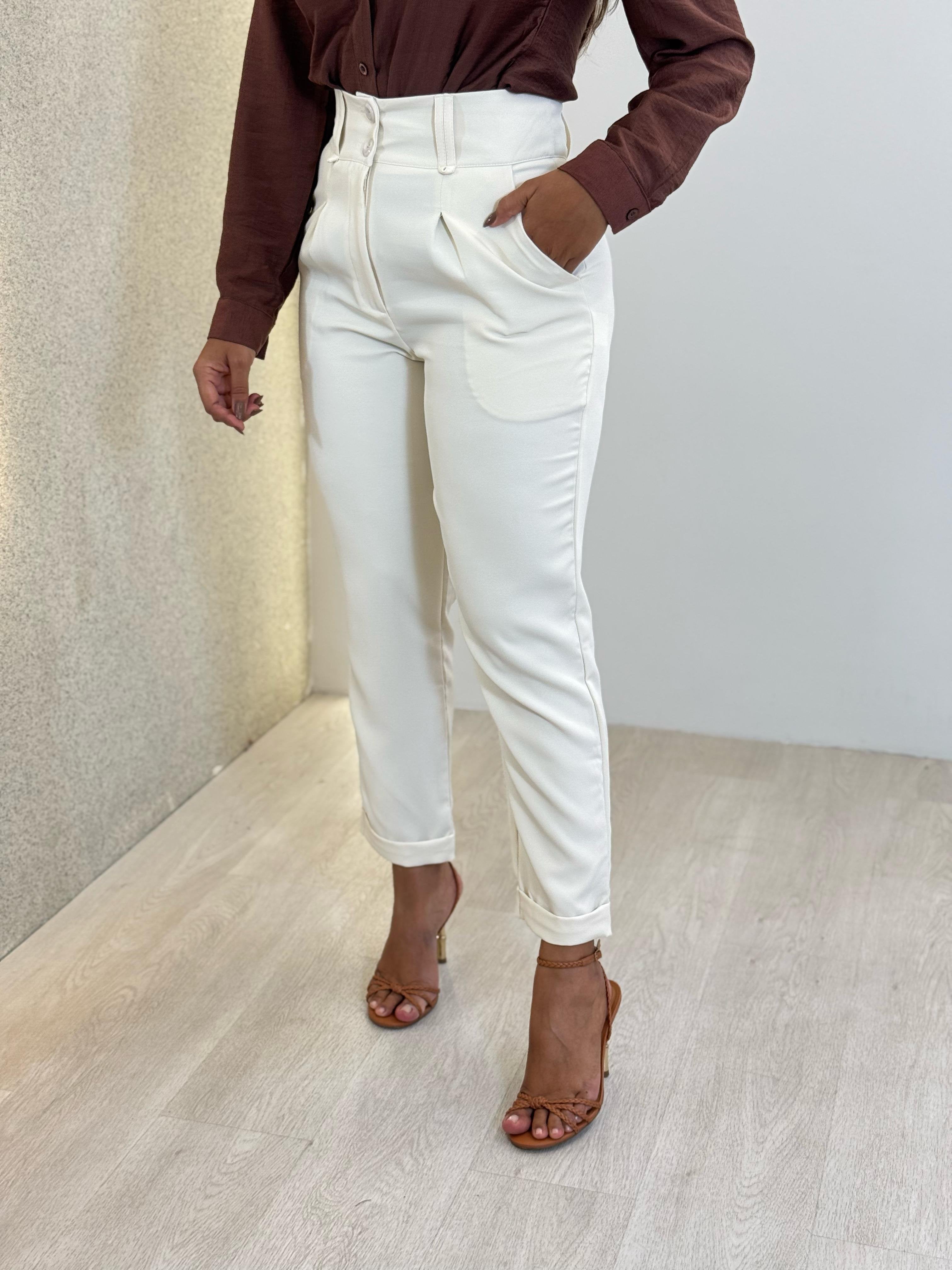 Descrição: A calça de alfaiataria é uma peça chave no guarda-roupa masculino e feminino, conhecida por seu corte impecável e ajustado, que proporciona um visual elegante e sofisticado. Feita com tecidos de alta qualidade, como lã, sarja ou crepe, essa calça oferece conforto e um toque refinado. O design tradicional apresenta uma modelagem reta ou slim, com pregas frontais e cintura bem estruturada, criando uma silhueta alongada e estilosa. Ideal para ambientes formais, como escritórios e eventos, a calça de alfaiataria também pode ser combinada com peças mais casuais para criar looks versáteis e contemporâneos.