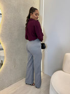 A cor marrom é uma tendência que veio para ficar e combina perfeitamente com diversas tonalidades, permitindo a criação de looks versáteis e elegantes. A calça pantalona, com sua modelagem ampla e fluida, é ideal para valorizar todos os tipos de corpo, trazendo um ar de sofisticação e leveza ao visual.