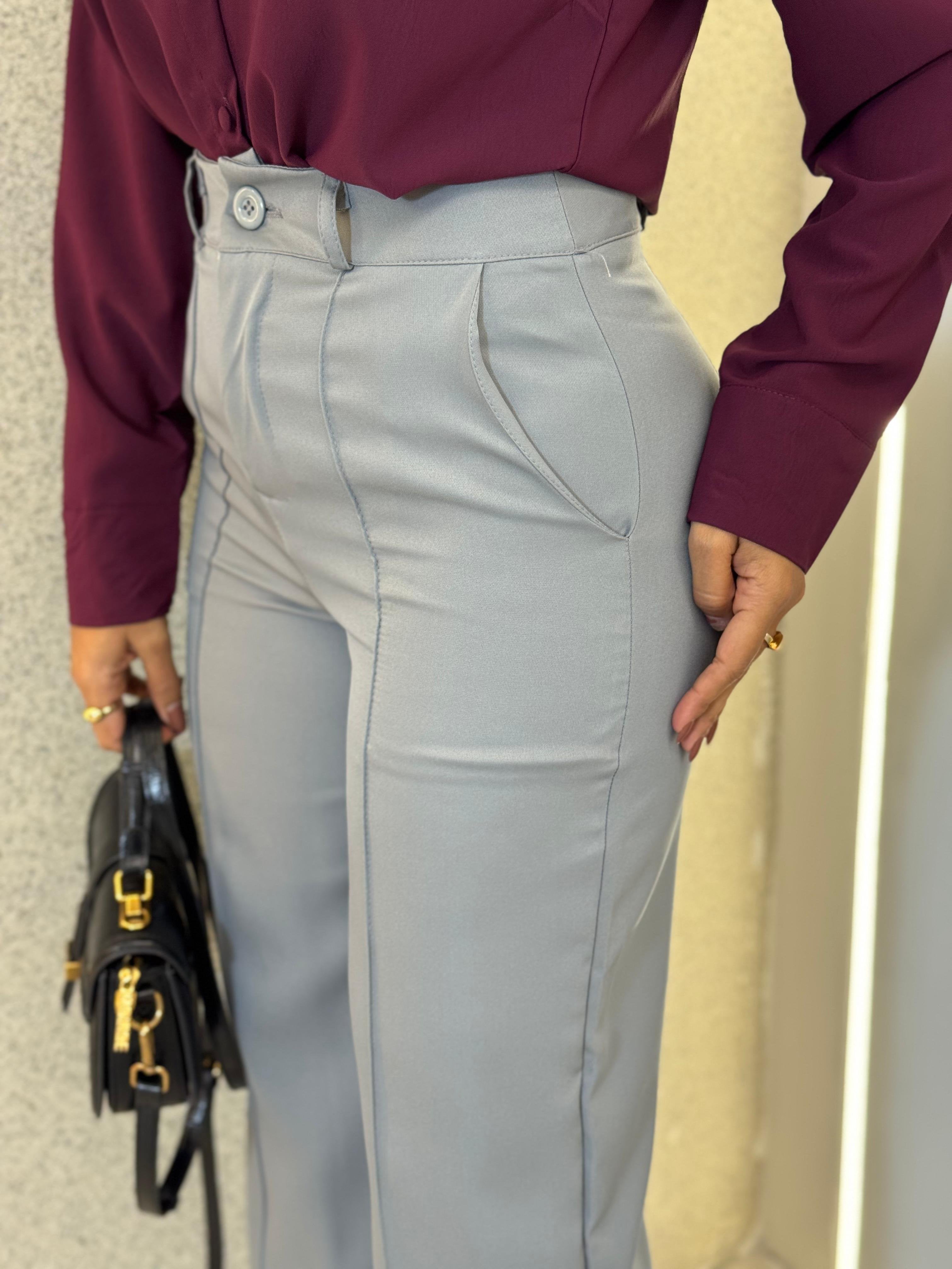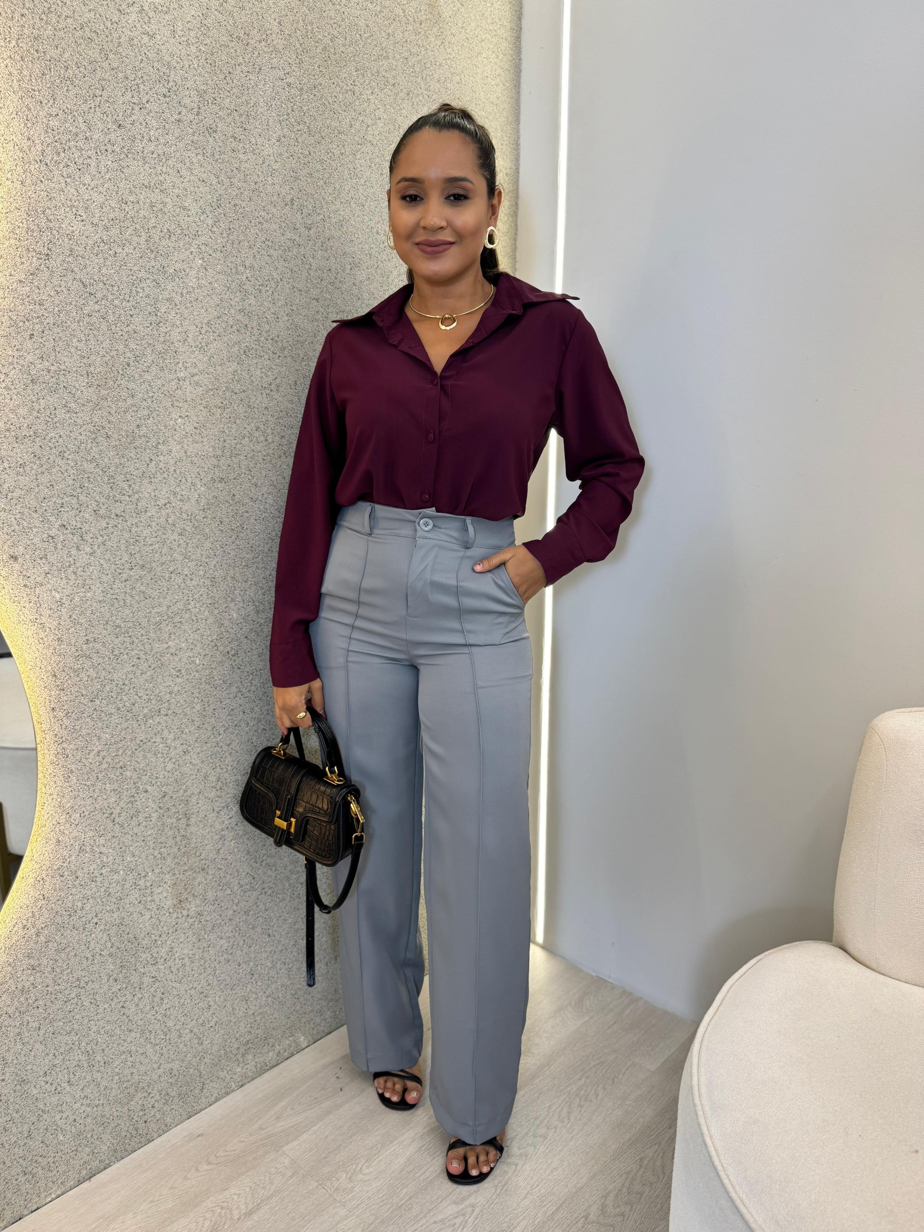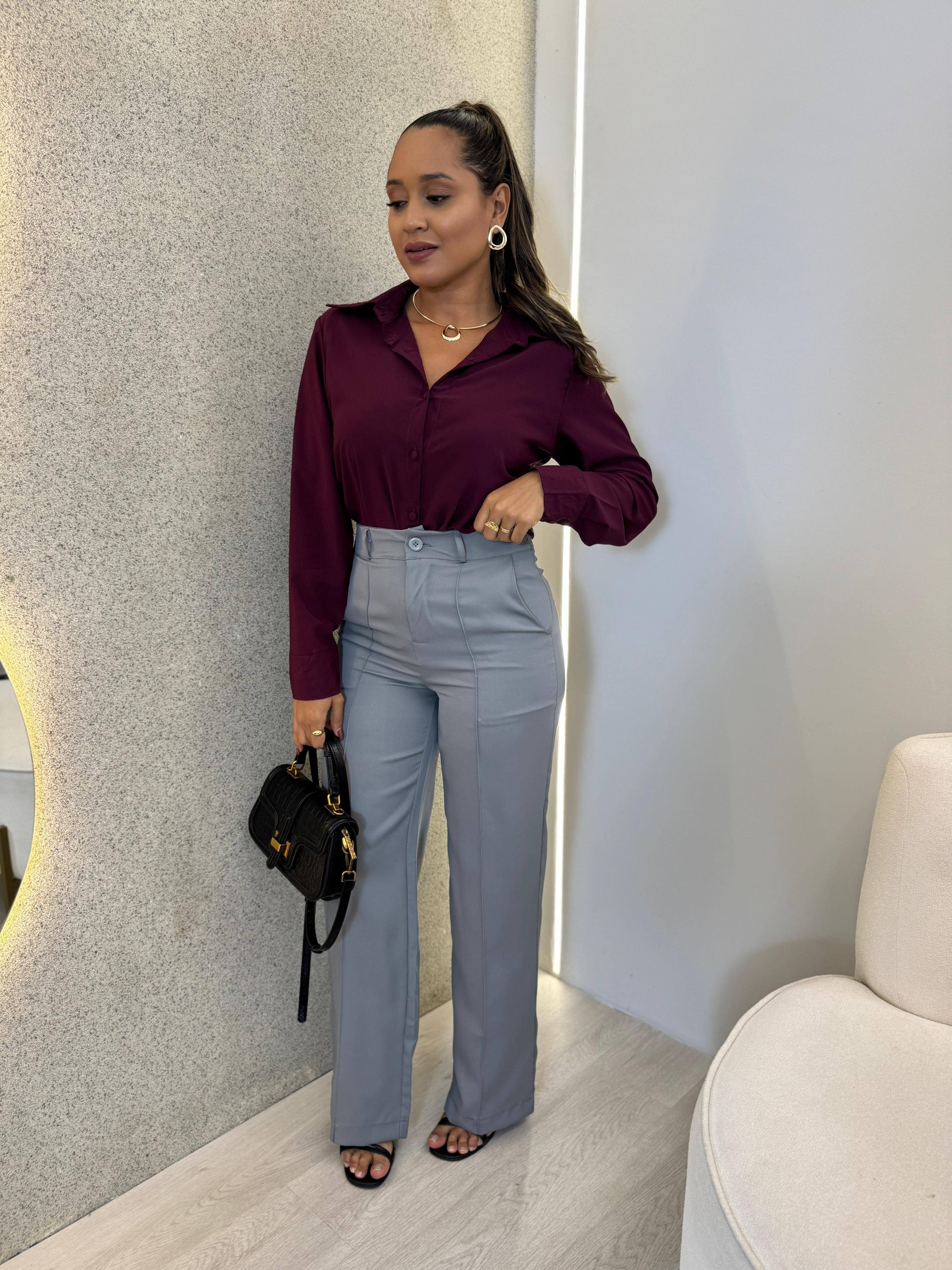 CALÇA PANTALONA EM ALFAIATARIA MALU CINZA
