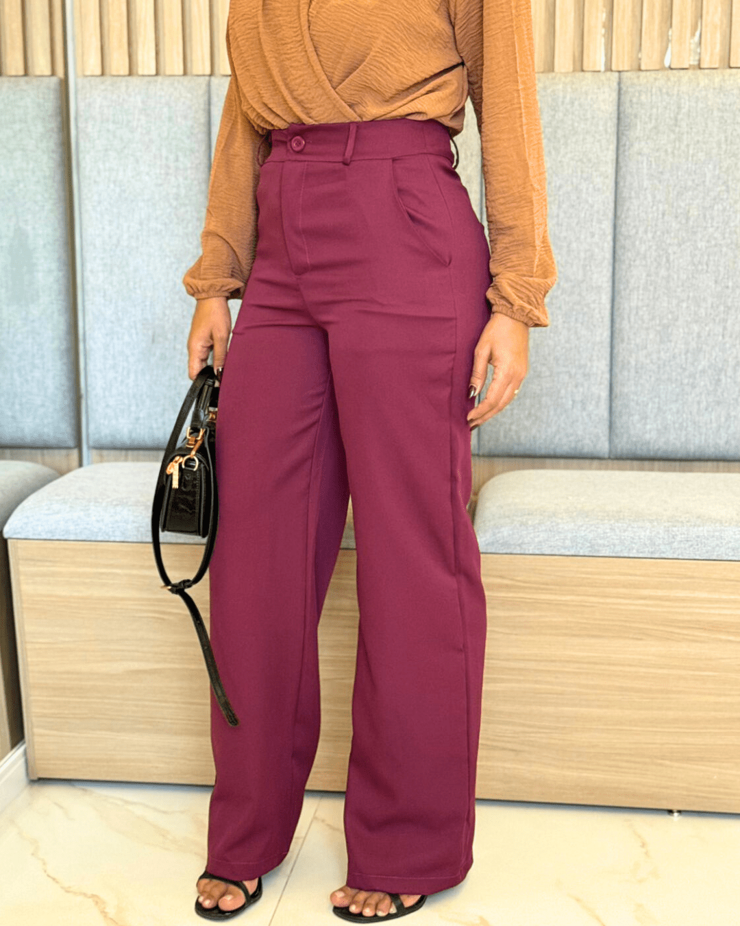 A Calça Pantalona em é a peça perfeita para quem busca elegância e conforto em um só produto. Com um corte impecável e um tecido de alta qualidade, essa calça é ideal para compor looks sofisticados e modernos.