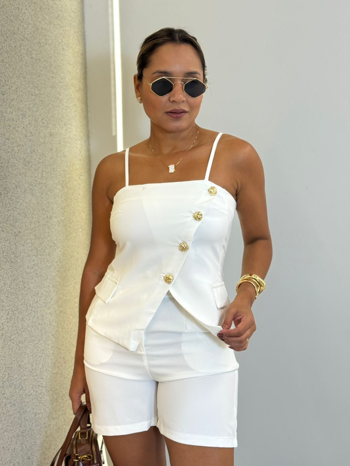 CONJUNTO BERMUDA + BLUSA EM ALFAIATARIA ANA LUISA BRANCO