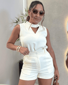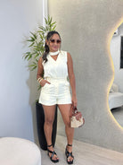 CONJUNTO BLUSA GOLA CHOKER + SHORT EM ALFAIATARIA DARA AMARELO