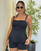 Elegância e conforto para o seu dia a dia! O Conjunto Diana é confeccionado em alfaiataria leve, garantindo caimento impecável e toque sofisticado. O top possui modelagem estruturada com decote reto e alças largas, valorizando o colo e oferecendo sustentação. A barra em peplum traz charme extra e um toque feminino ao visual. O short, em alfaiataria do mesmo tecido, apresenta cintura média, caimento reto e barra levemente dobrada, proporcionando conforto sem perder a elegância.