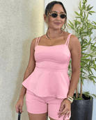 Elegância e conforto para o seu dia a dia! O Conjunto Diana é confeccionado em alfaiataria leve, garantindo caimento impecável e toque sofisticado. O top possui modelagem estruturada com decote reto e alças largas, valorizando o colo e oferecendo sustentação. A barra em peplum traz charme extra e um toque feminino ao visual. O short, em alfaiataria do mesmo tecido, apresenta cintura média, caimento reto e barra levemente dobrada, proporcionando conforto sem perder a elegância.