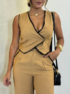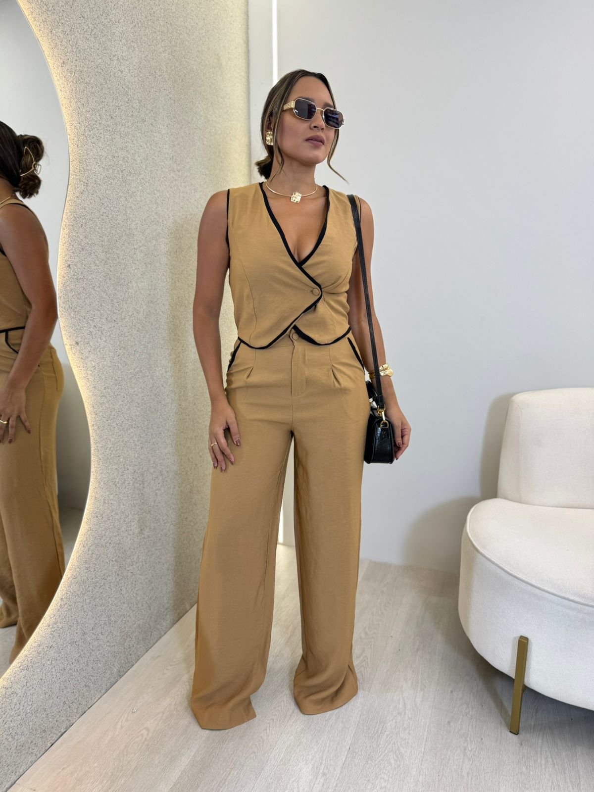 CONJUNTO CALÇA PANTALONA+COLETE EM ALFAIATARIA MARANT REBECA MOSTARDA
