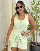 CONJUNTO COLETE ALONGADO + SHORT EM ALFAIATARIA SARA VERDE