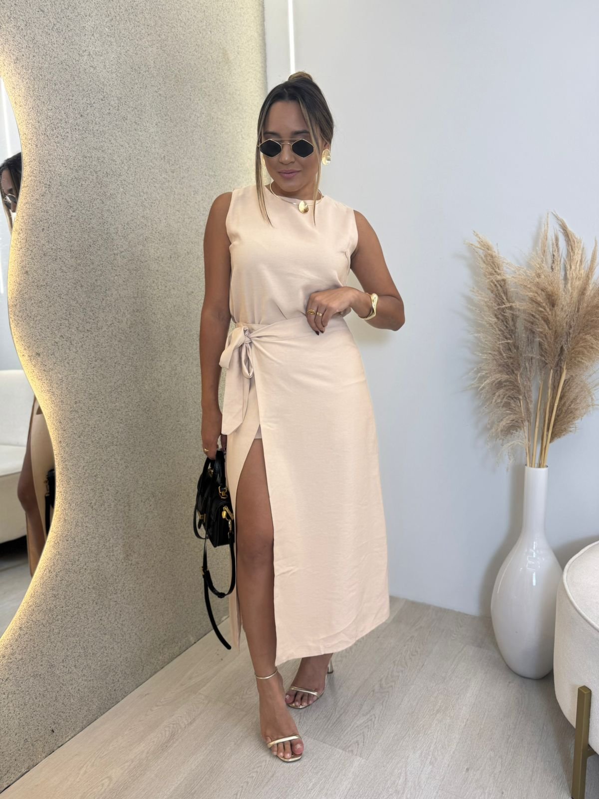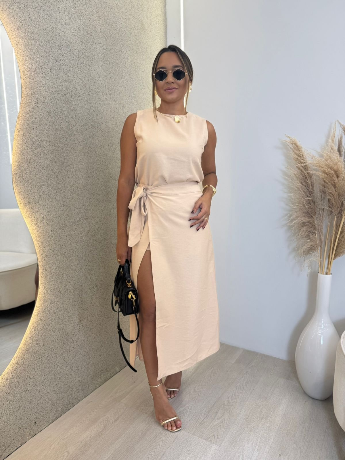 CONJUNTO DE SHORT SAIA ENVELOPE E BLUSA EM ALFAIATARIA MARANT HELENA NUDE