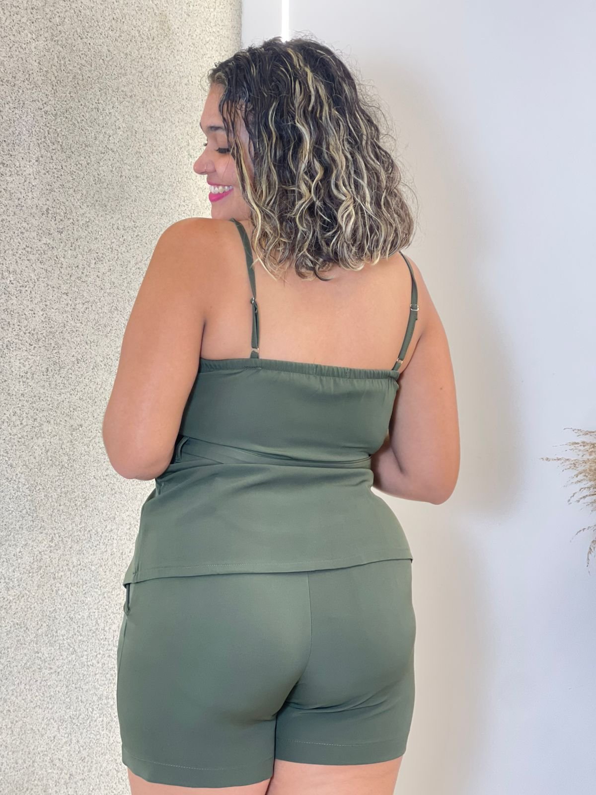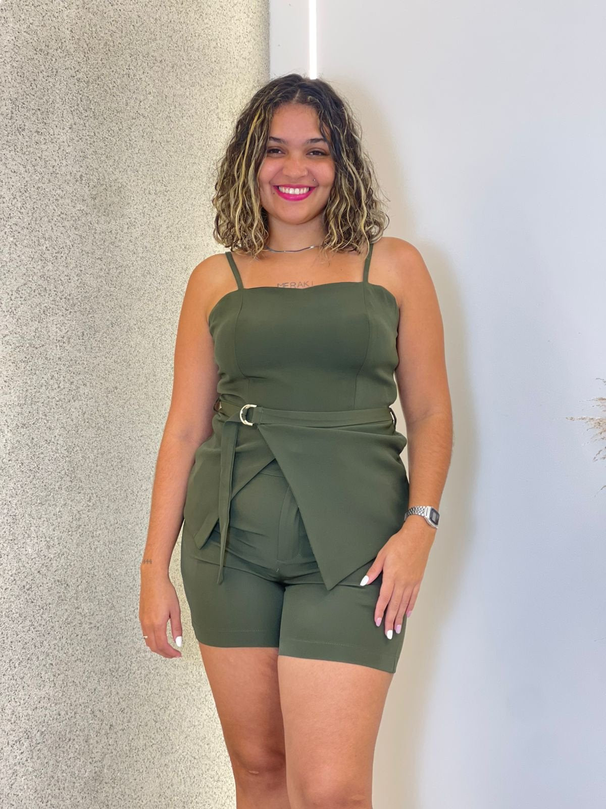 CONJUNTO DE SHORT + BLUSA EM ALFAIATARIA IZABELY VERDE