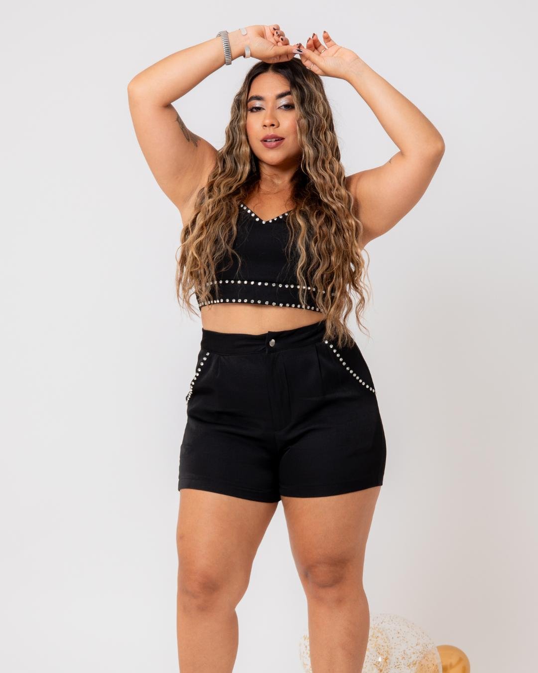 CONJUNTO FEMININO EM ALFAIATARIA LINDA MOÇA EXCLUSIVE CLARA PRETO