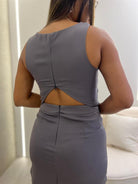 CONJUNTO FEMININO EM ALFAIATARIA LINDA MOÇA EXCLUSIVE FLAVIA CINZA ESCURO