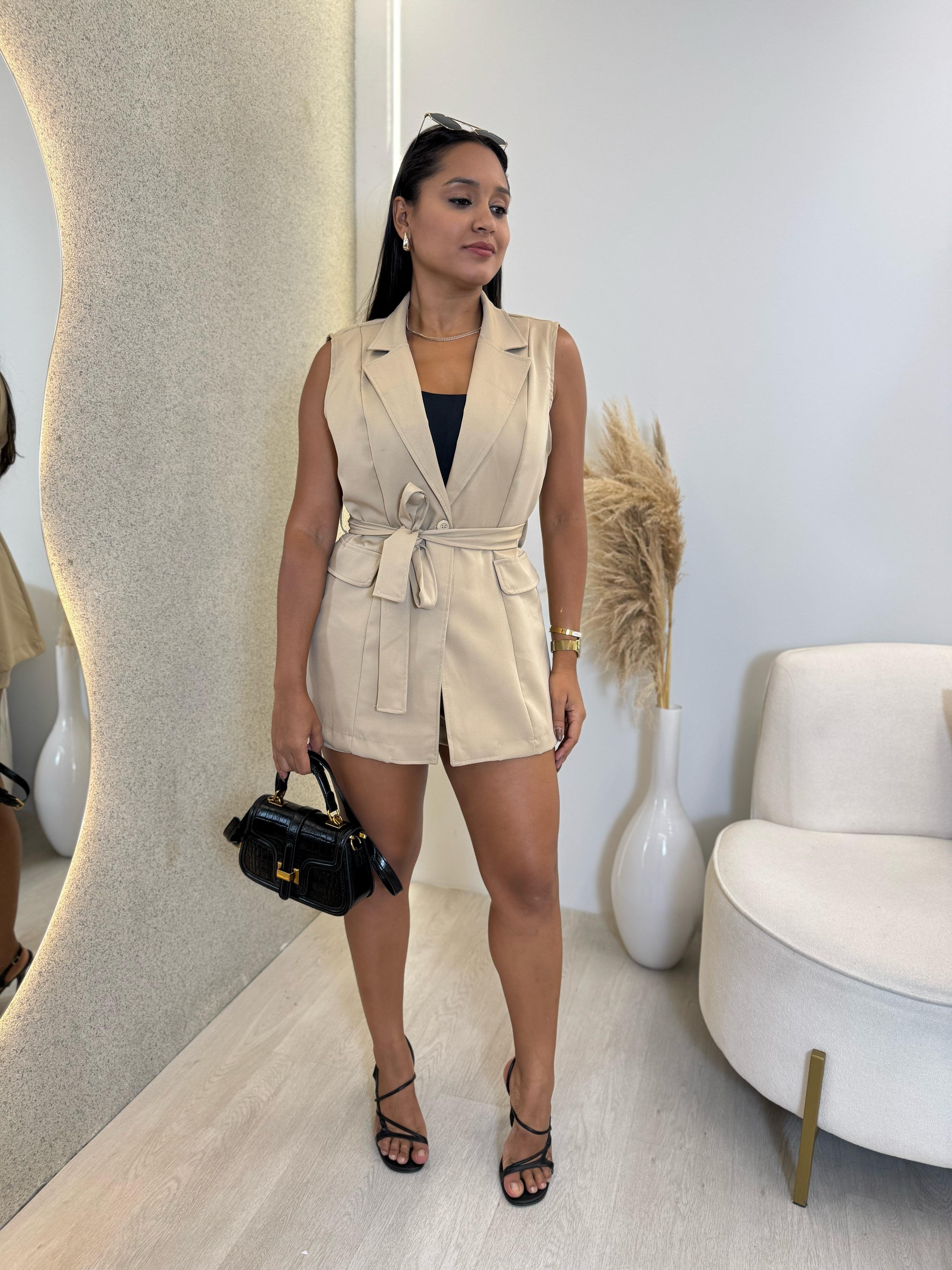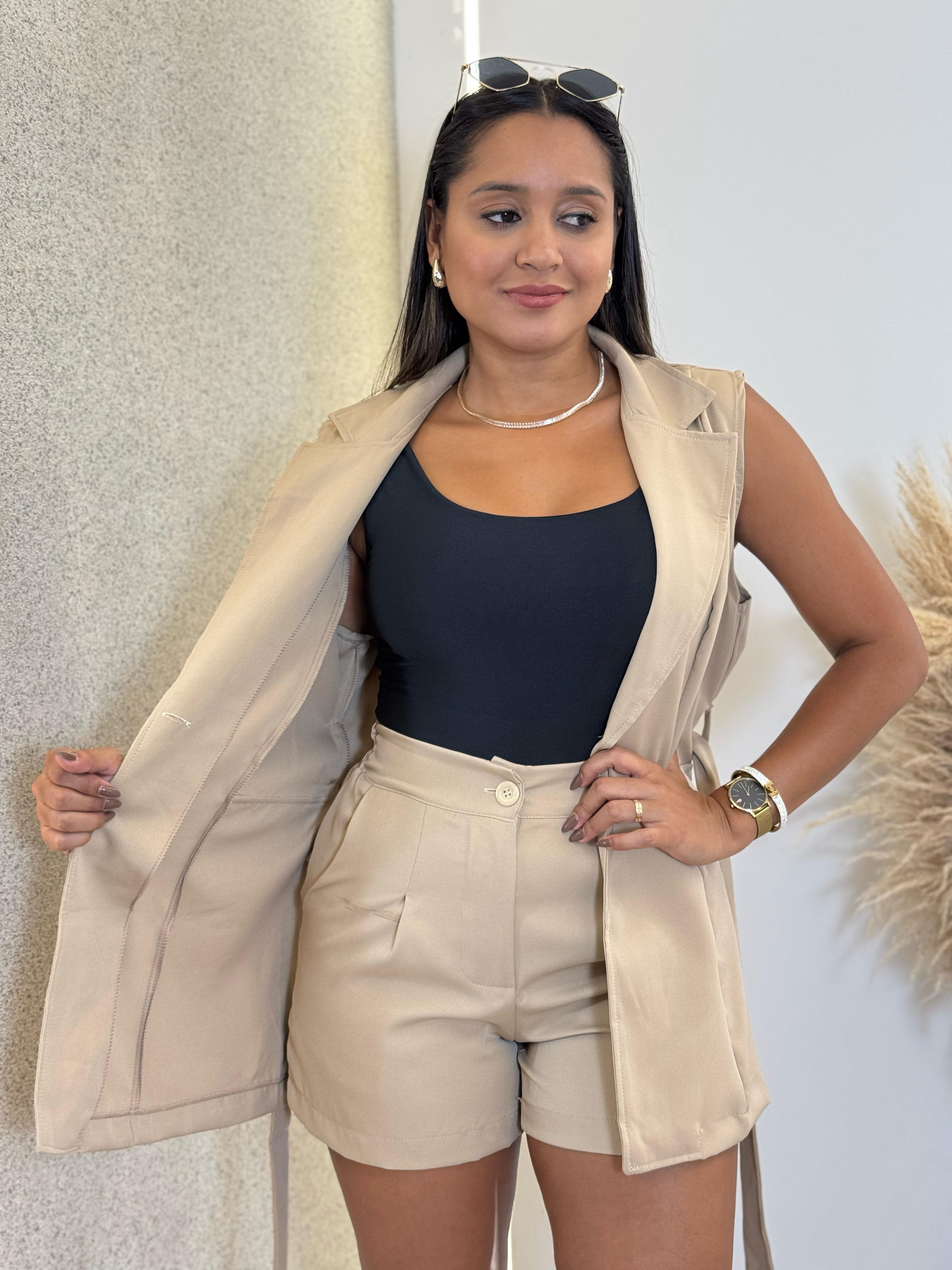 Descrição: Este conjunto de alfaiataria, composto por short e colete, é a perfeita fusão entre o clássico e o contemporâneo. Confeccionado com tecidos nobres e cortes precisos, o modelo destaca-se pelo caimento impecável e pelo design sofisticado, ideal para ocasiões que exigem elegância sem abrir mão do conforto. O colete, com sua modelagem estruturada e detalhes sutis, harmoniza-se com o short, que traz um toque moderno e descontraído, criando um visual versátil e refinado. Seja para um evento social ou para um dia de trabalho, esse conjunto traduz confiança, estilo e um acabamento artesanal de alta qualidade.