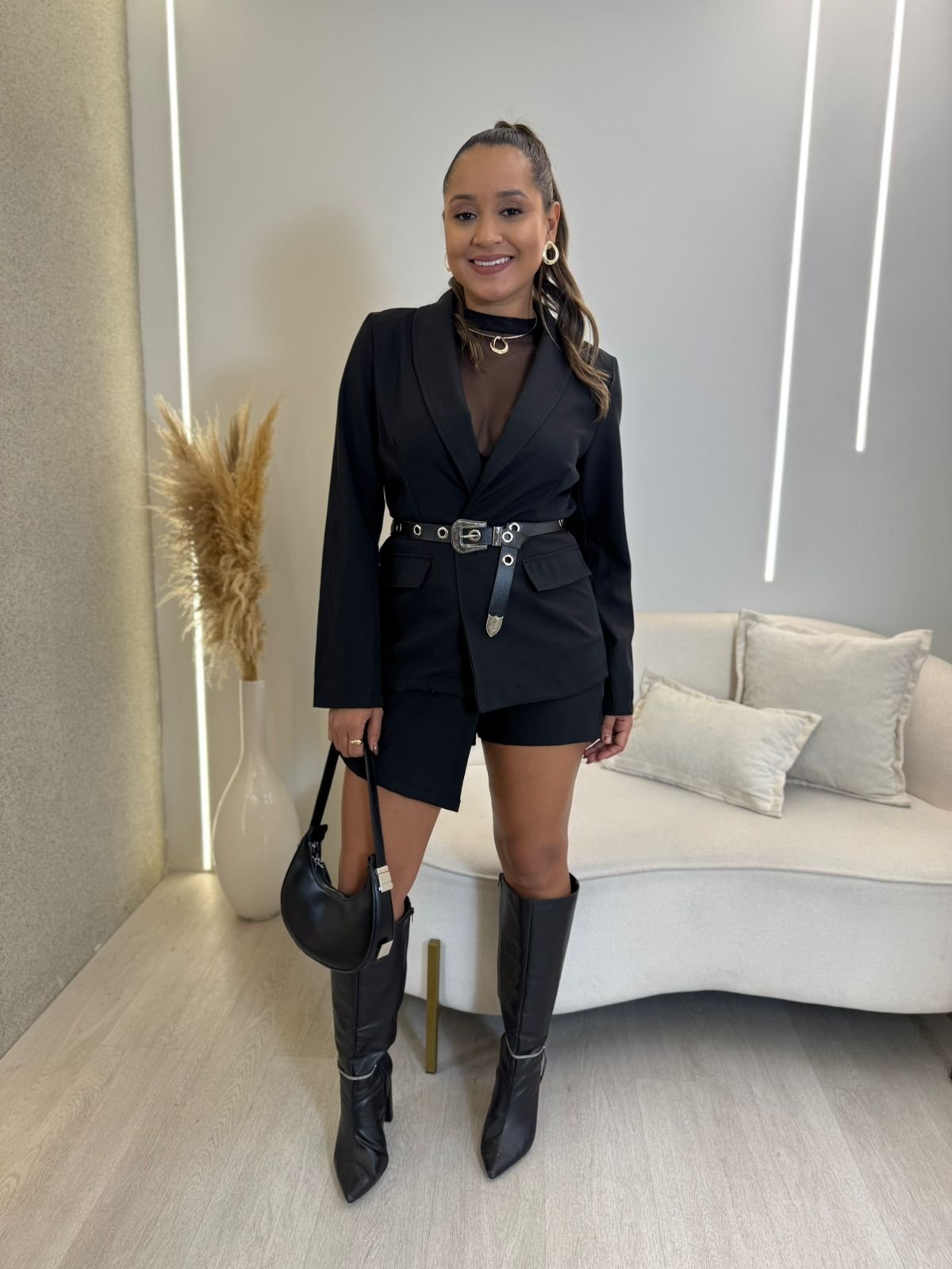 CONJUNTO SHORT + BLAZER EM ALFAIATARIA KARINA PRETO