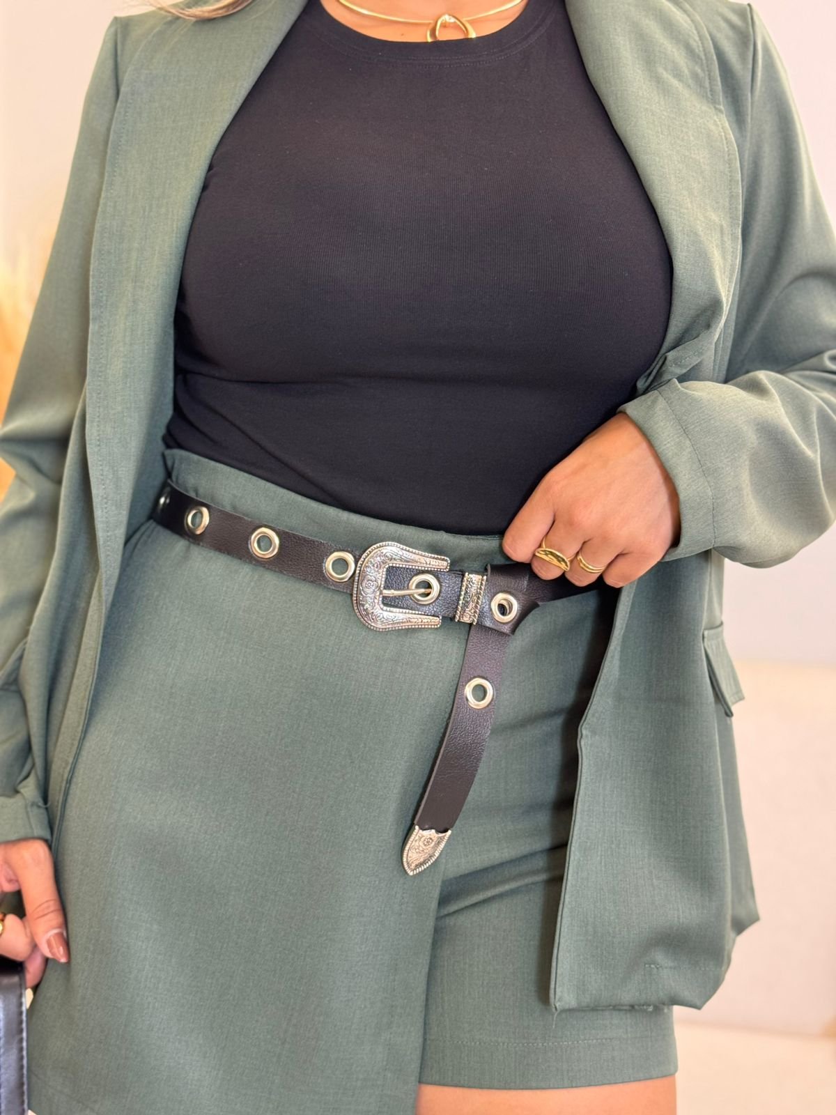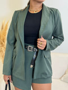 CONJUNTO SHORT + BLAZER EM ALFAIATARIA KARINA VERDE