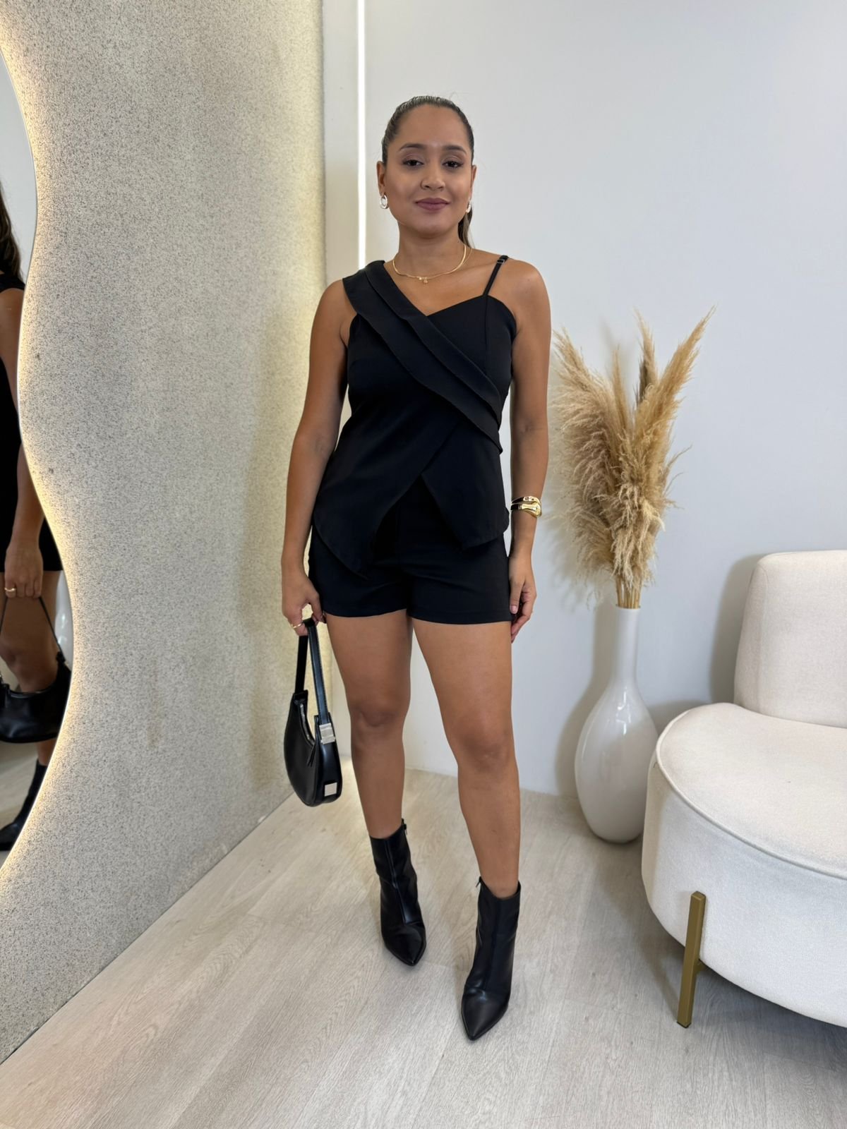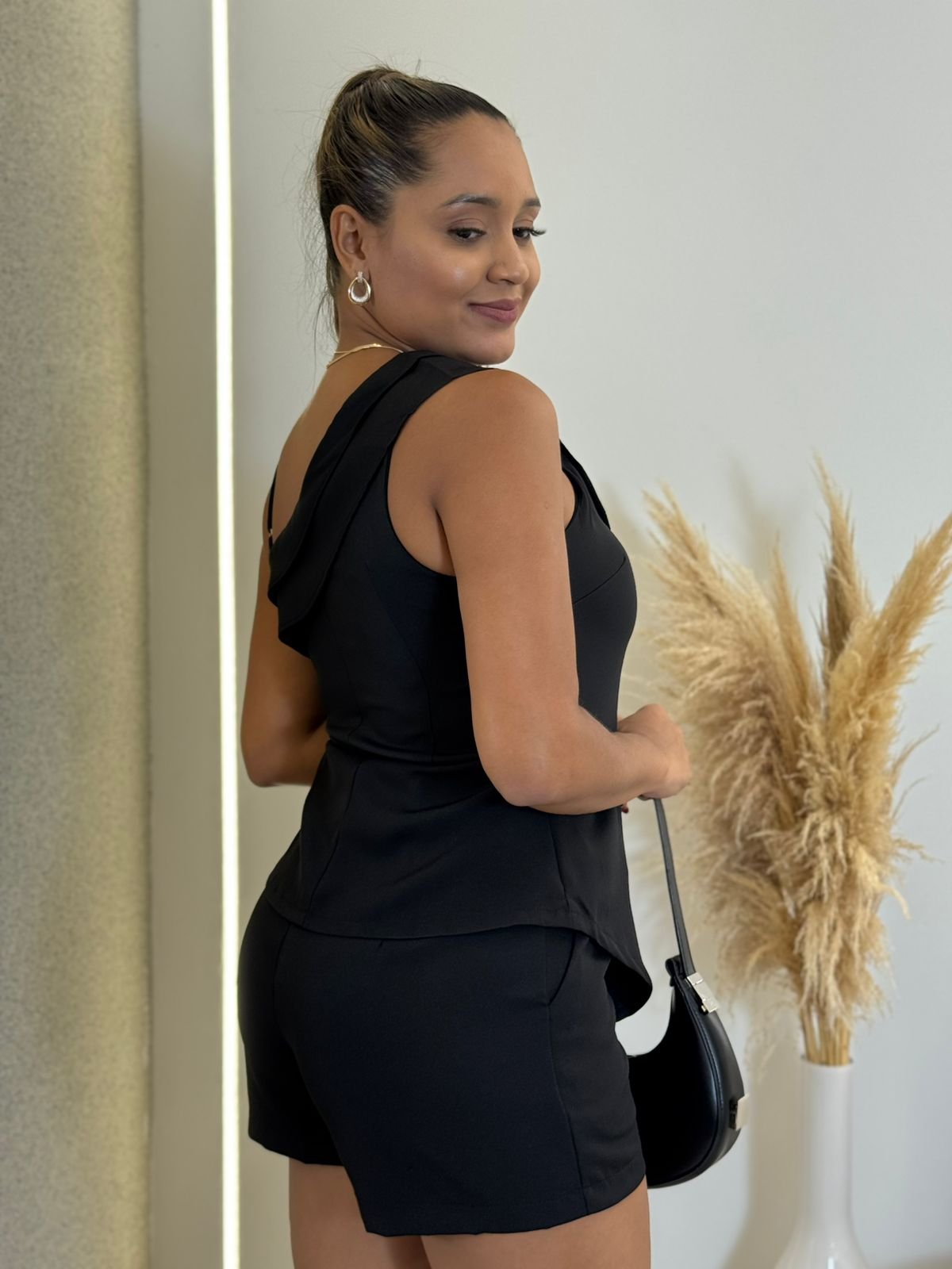 CONJUNTO SHORT + BLUSA EM ALFAIATARIA BARBARA PRETO