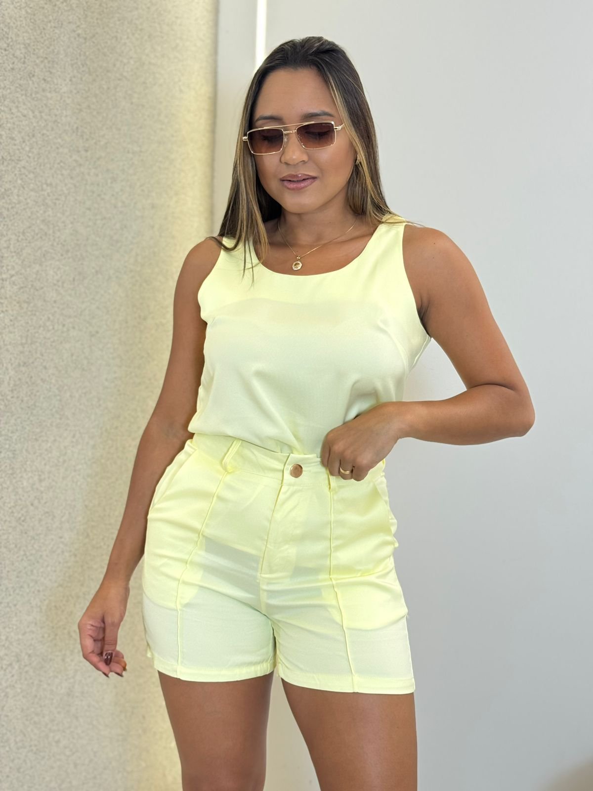 CONJUNTO SHORT COM BLUSA EM ALFAIATARIA BRENDA AMARELO