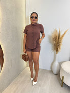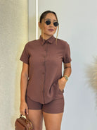 CONJUNTO SHORT COM CAMISÃO EM ALFAIATARIA MARANT MARIA ISIS MARROM