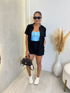 CONJUNTO SHORT COM CAMISÃO EM ALFAIATARIA MARANT MARIA ISIS PRETO