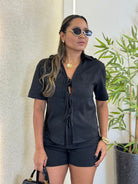 CONJUNTO SHORT+BLUSA EM ALFAIATARIA NINA PRETO