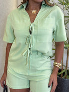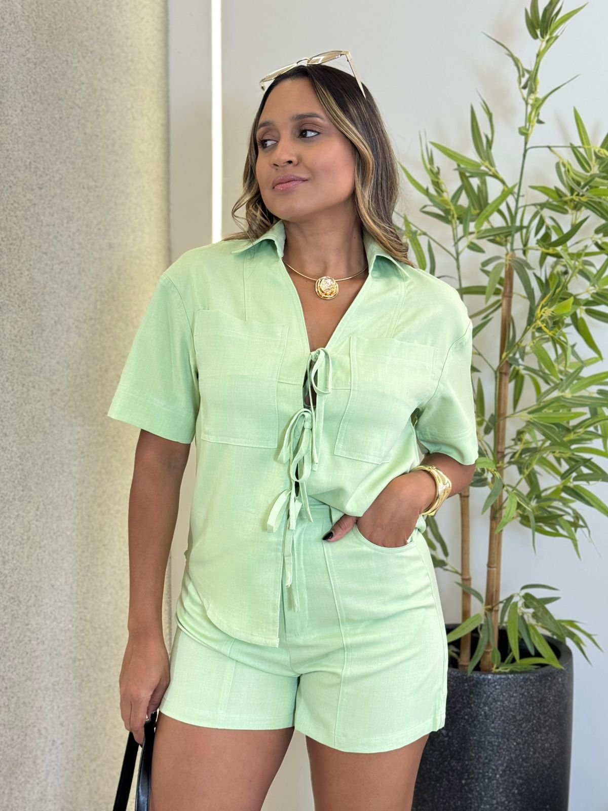 CONJUNTO SHORT+BLUSA EM ALFAIATARIA NINA VERDE