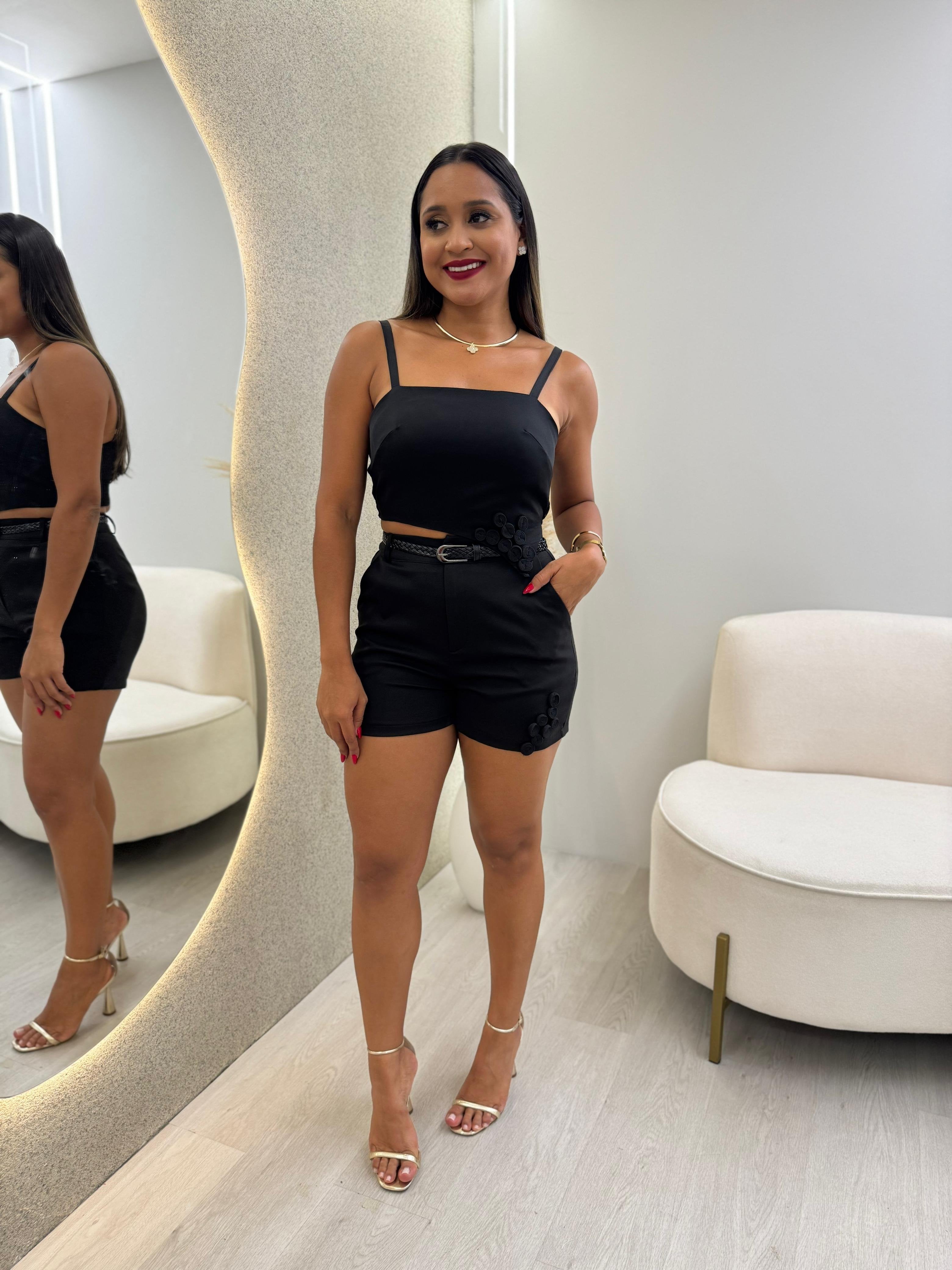 CONJUNTO FEMININO EM ALFAIATARIA LINDA MOÇA EXCLUSIVE CAMILE PRETO