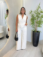 MACACÃO DECOTE TRASNPASSADO EM ALFAIATARIA ALANA NUDE