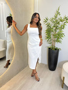 VESTIDO MIDI COM DRAPEADO LATERAL NIVEA BRANCO