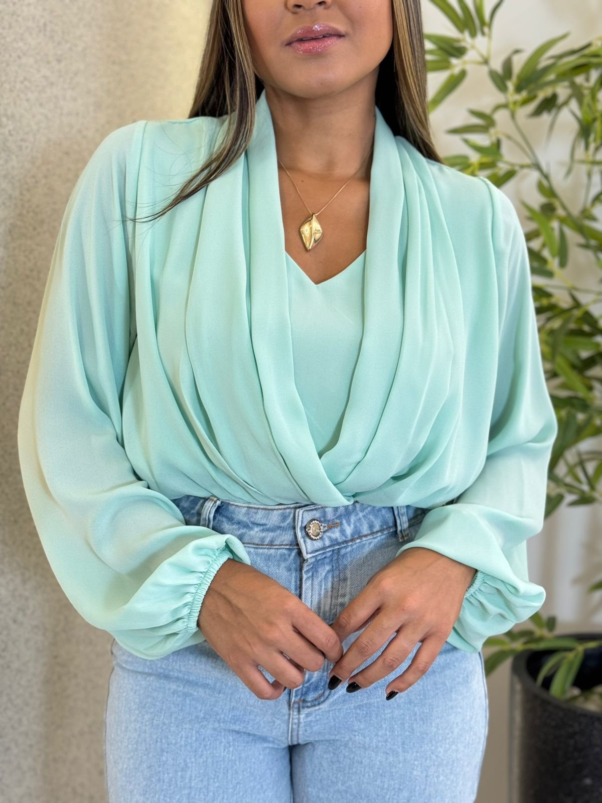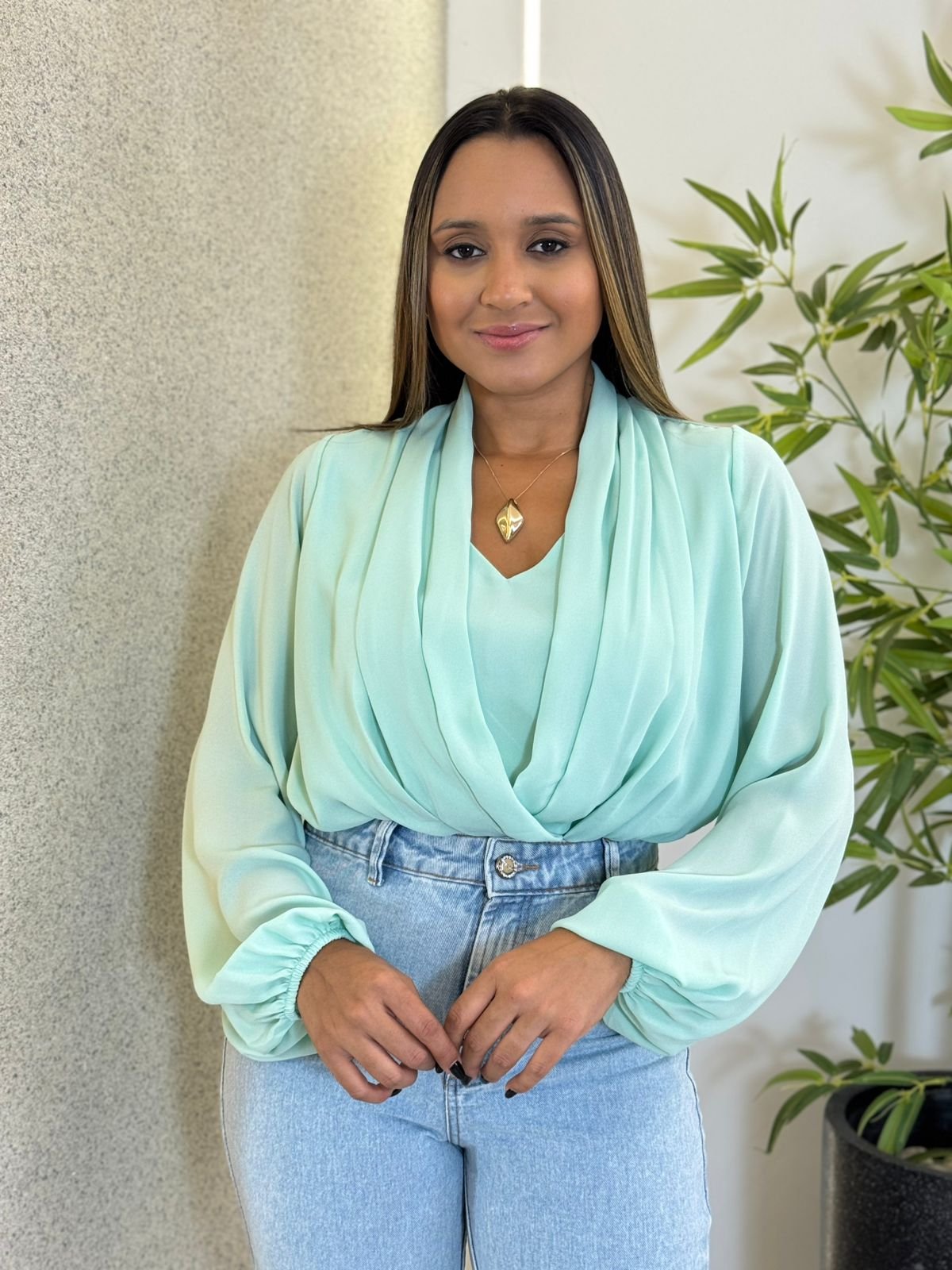 BLUSA TRANSPASSADA EM CREPE ERICA VERDE