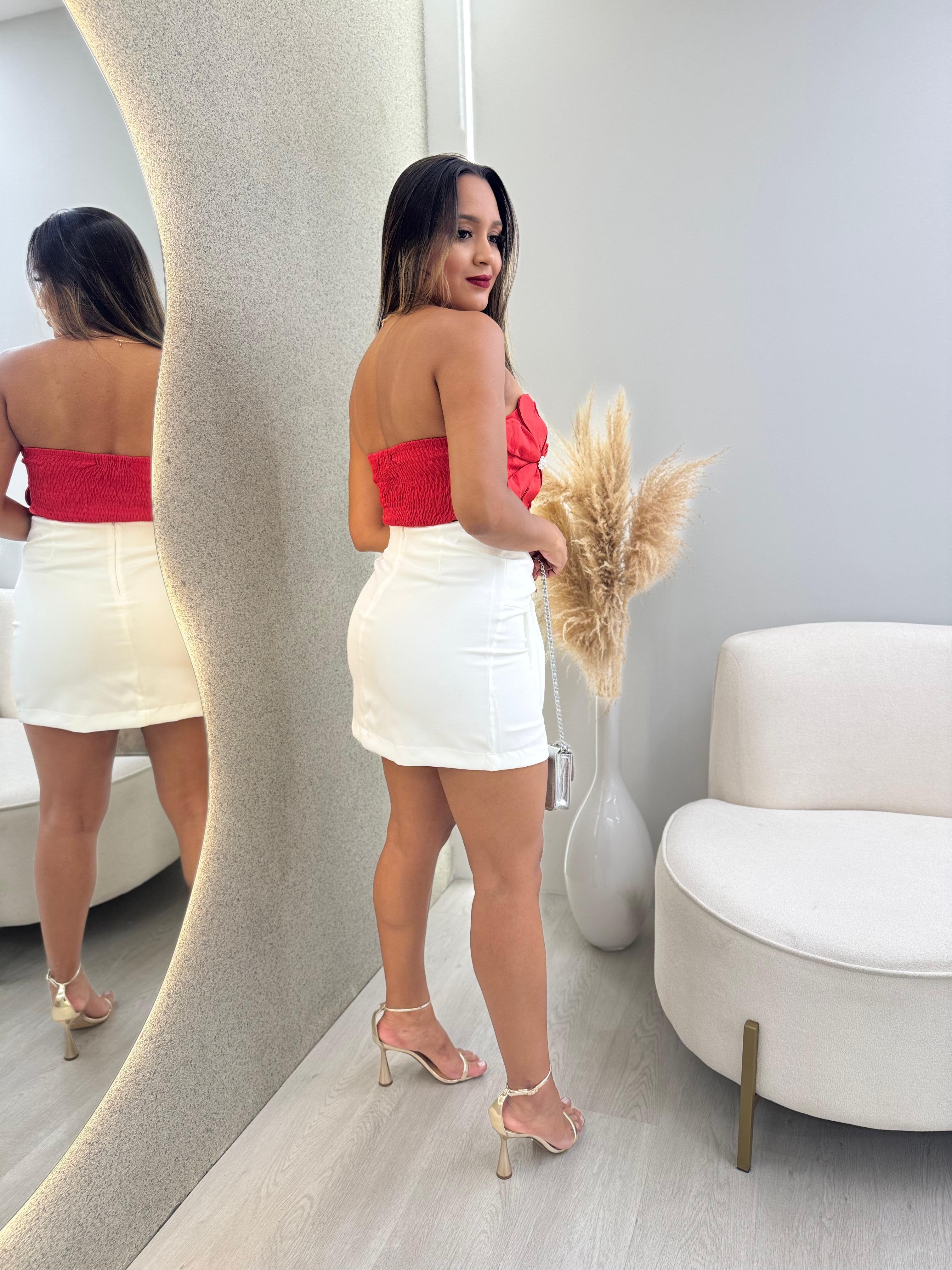 Descrição: "Saia em alfaiataria, perfeita para compor looks elegantes e sofisticados. Confeccionada em tecido de alta qualidade, oferece caimento impecável e toque macio. O design clássico apresenta cintura alta e fechamento por zíper discreto, garantindo um ajuste confortável e estiloso. Ideal para benefícios formais ou para elevar o visual do dia a dia com um toque de modernidade Combine com blusas leves ou camisas estruturadas para um look sofisticado."