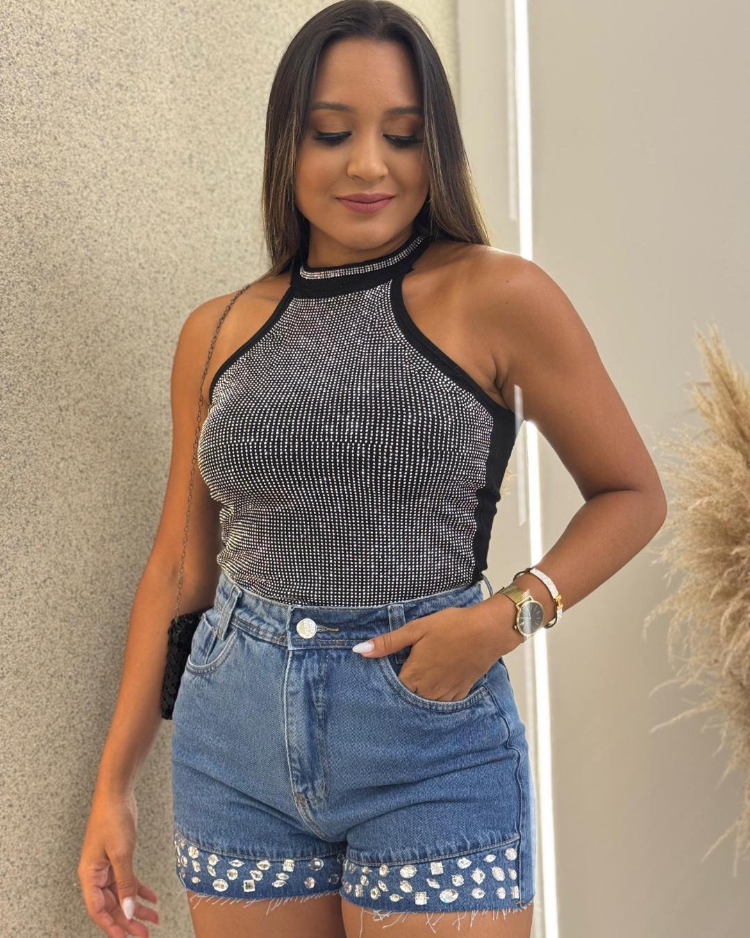 CONJUNTO COLETE+SHORT EM ALFAIATARIA BRUNA PRETO
