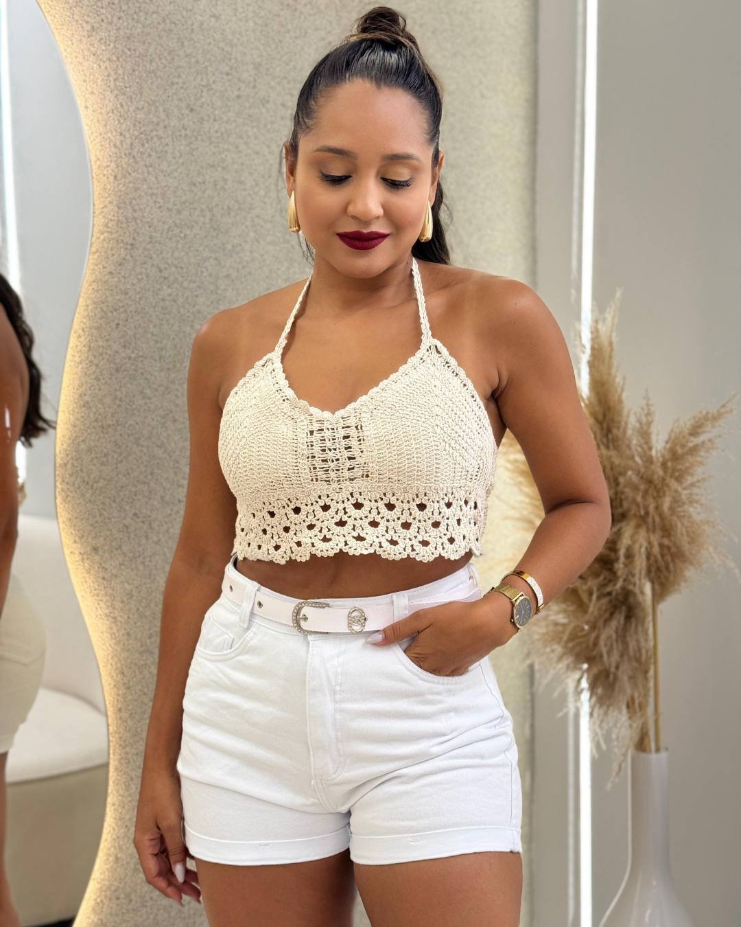 CONJUNTO COLETE+SHORT EM ALFAIATARIA BRUNA BRANCO