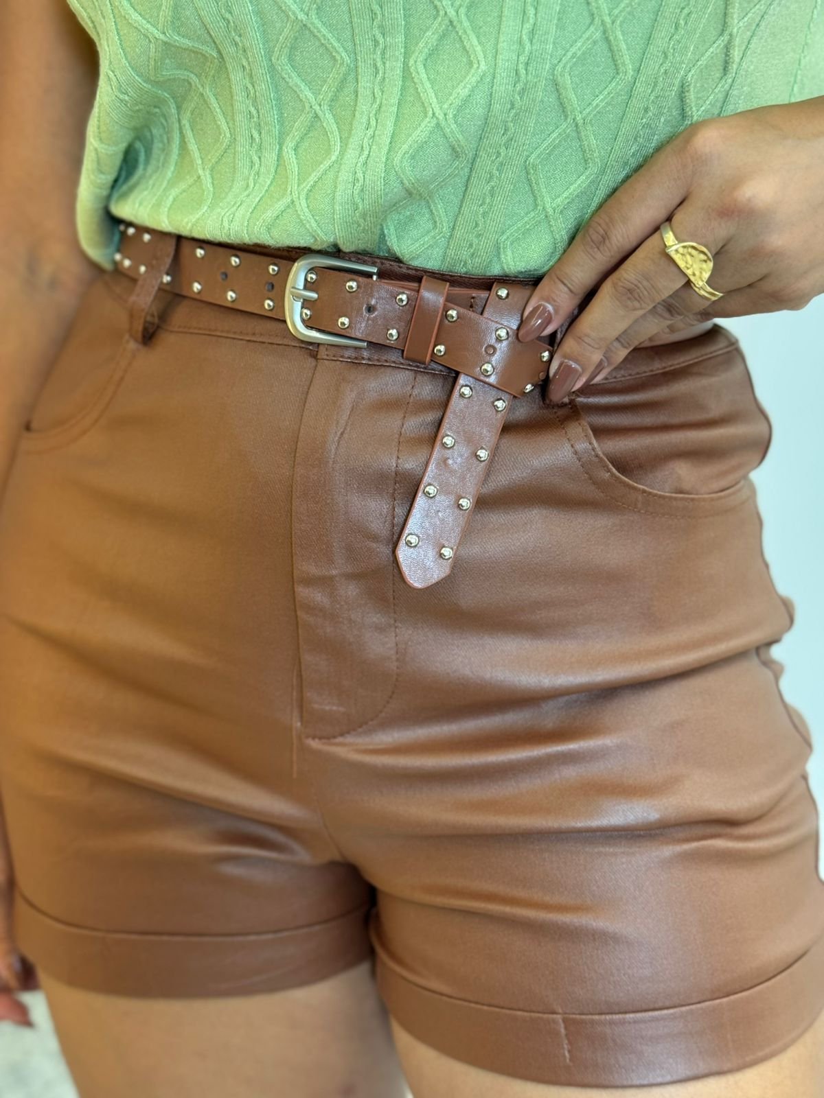 SHORT RESINADO COM CINTO MELISSA MARROM
