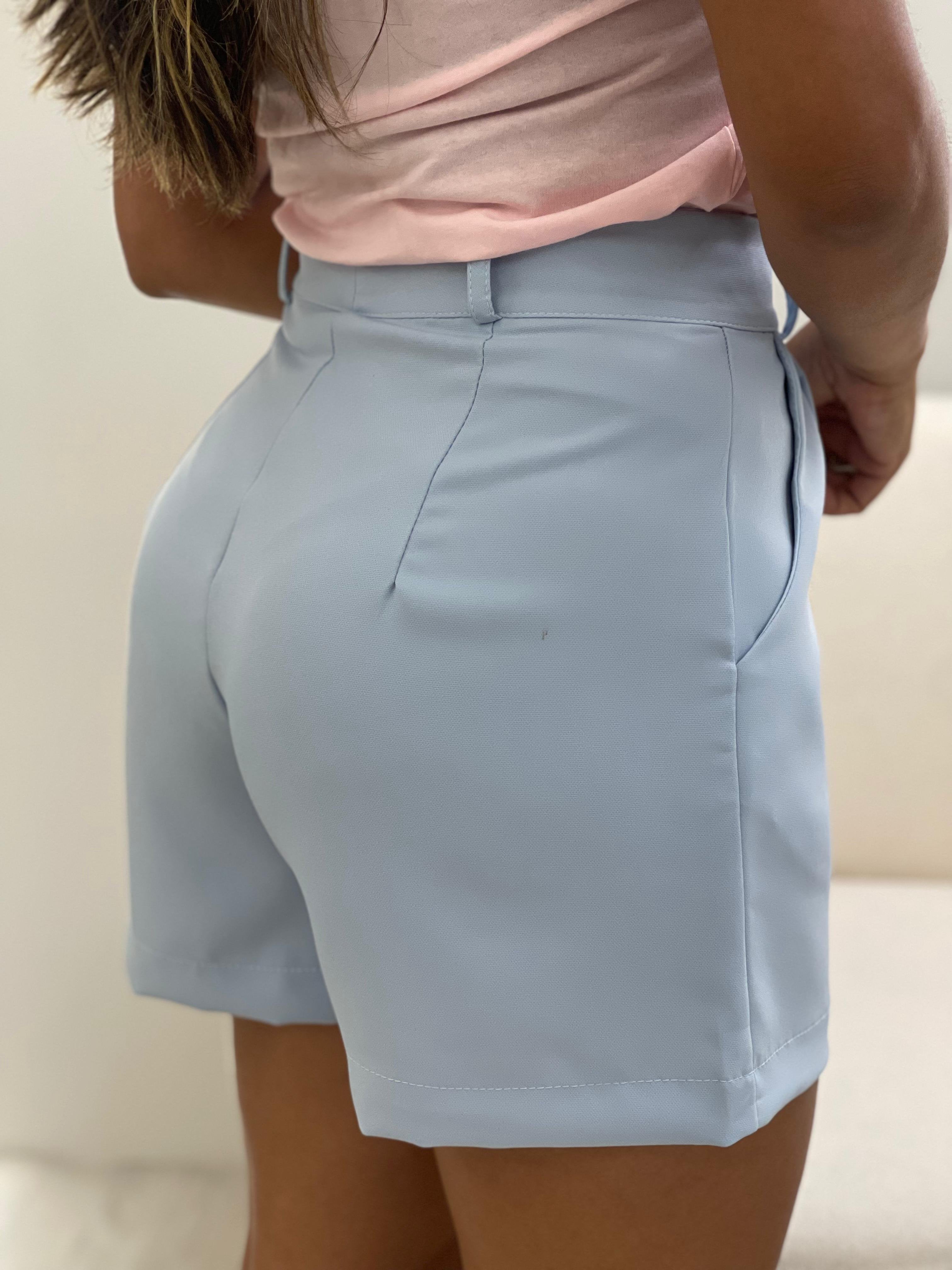 SHORT SOCIAL FEMININO EM ALFAIATARIA LINDA MOÇA EXCLUSIVE KEILA AZUL