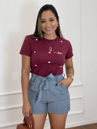 SHORT SOCIAL FEMININO EM ALFAIATARIA LINDA MOÇA EXCLUSIVE REBECA CINZA