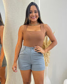 SHORT SOCIAL FEMININO EM ALFAIATARIA LINDA MOÇA EXCLUSIVE ZOE CINZA