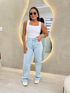 Descrição: Calça Wide Leg Jeans Claro — a peça perfeita para um look moderno e estiloso! Com modelagem ampla e caimento impecável, esse calçado valoriza a silhueta, conforto e moda. Feita em jeans de alta qualidade, possui cintura alta, fechamento por zíper e botão, além de bolsos funcionais. Ideal para compor looks versáteis, do casual ao sofisticado. Combine com croppeds, camisas ou blusas ajustadas para um visual incrível!