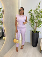 CONJUNTO CALÇA CORTE RETO+BLUSA EM ALFAIATARIA ISABELE LILAS