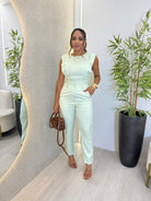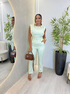 CONJUNTO CALÇA CORTE RETO+BLUSA EM ALFAIATARIA ISABELE VERDE