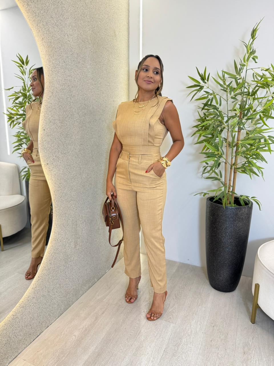 CONJUNTO CALÇA CORTE RETO+BLUSA EM ALFAIATARIA ISABELE NUDE